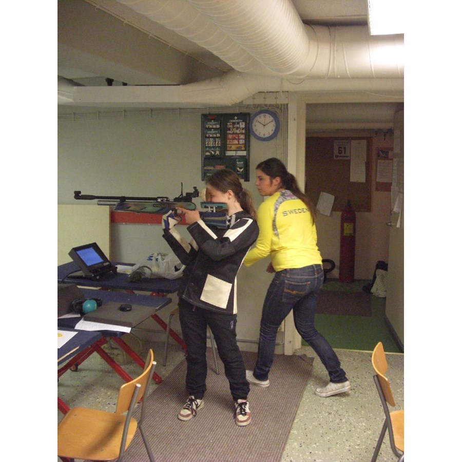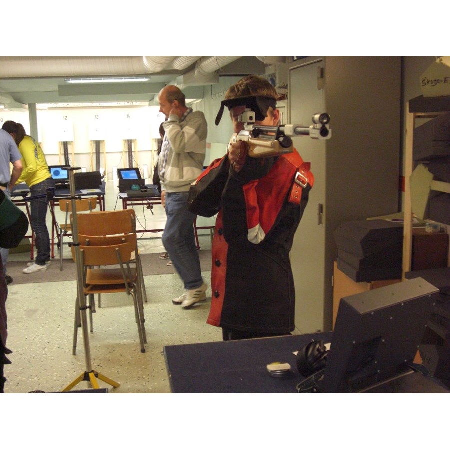 Lördagen 1 oktober samlades 10 skyttar och deras föräldrar med de tre ledarna Andrea Franzén, Eric Wallberg och Linda Strand för att komma igång med säsongens luftgevärsskytte. Arrangör var Värmlands skyttesportförbunds ungdomsektion Gevär som redan tidigare i år haft några lyckade lägerdagar. Dagen inleddes med teorigenomgång av ställningen och därefter fick alla skyttar hjälp eller tips av ledarna. För att träna att hitta sin egen ställning fick skyttarna prova olika övningar där syftet var att byta skjutplats för att återigen hitta sin egen ställning. Olika småtävlingar genomfördes där reglerna bygger på att ledarna ser till skyttens egen resultatnivå och lägger nivån utifrån det. Det gör att vem som helst kan vinna oavsett erfarenhet! Populärt bland skyttarna!