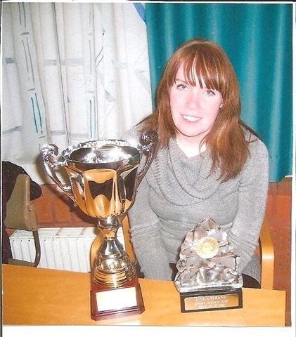 Linda erhåller pris för sin seger vid SM i banskjutning liggande 2009.